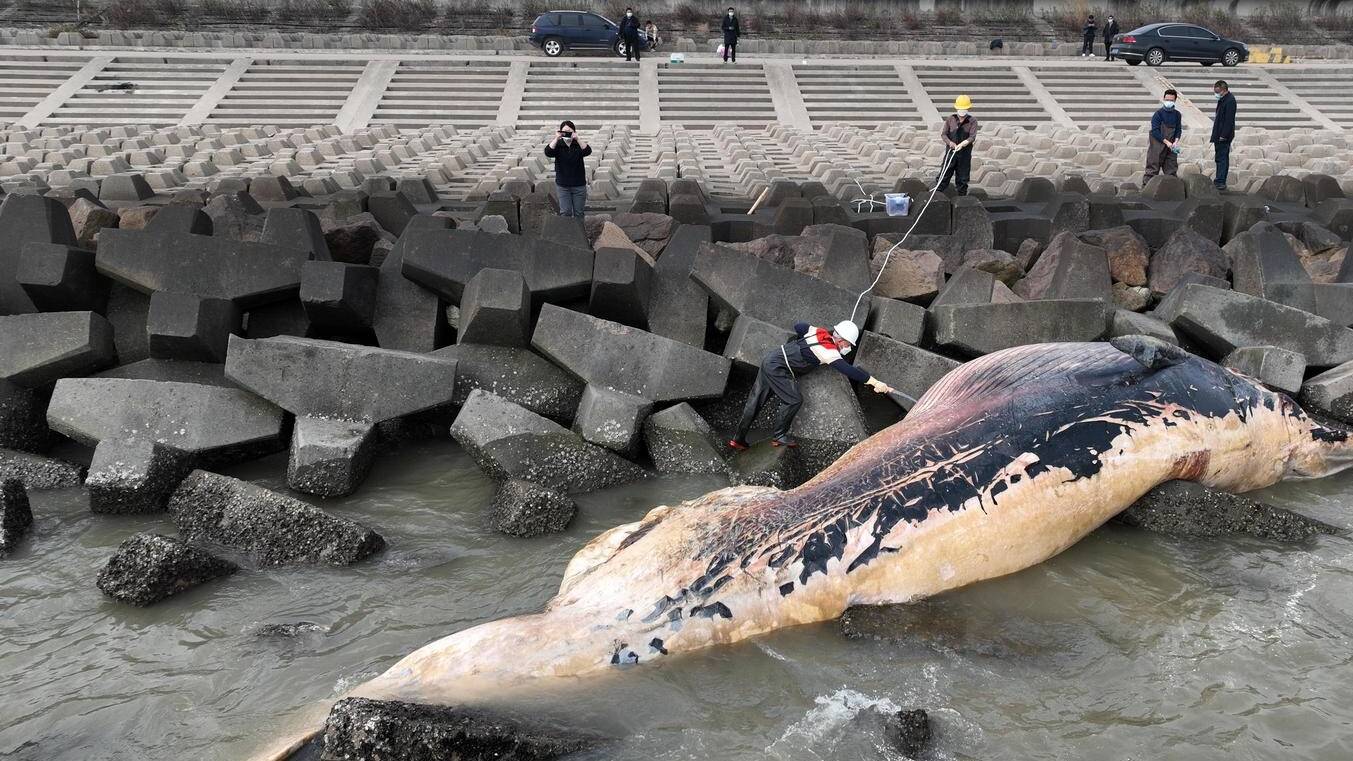 1月29日下午起,有网友拍摄视频并发布上网称,汕头东海岸海域出现一头鲸鱼的尸体。