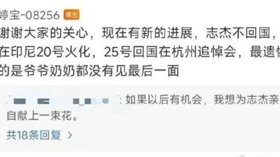 8月15日晚上,在张志杰不幸去世46天后,他的姑姑在社交媒体更新了侄子的最新情况。根据张志杰姑姑的说法,这位国羽小将于8月20日在印尼当地火化,25日回国在杭州开追悼会。