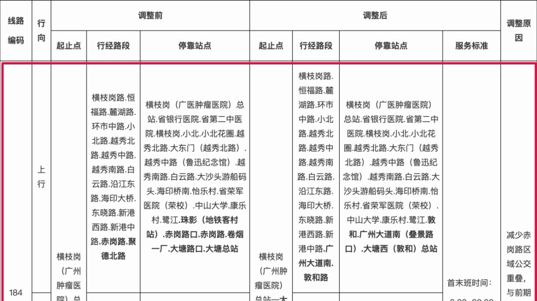近日,据广州市交通运输局公示,为优化公交线网布局,公共汽车184、465、468、965、B11、709、714、716、夜116路等线路计划调整行经路段及站点,公共汽车43、夜78、夜127路等线路