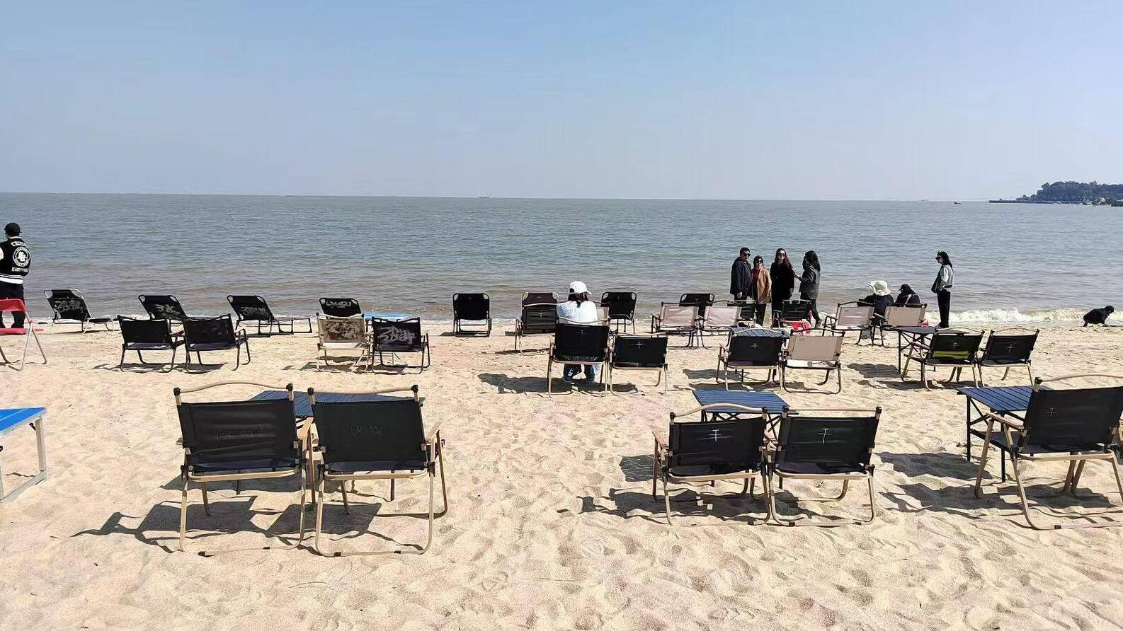 香炉湾沙滩位于珠海情侣中路,是一处半月形的海湾沙滩,也是珠海情侣路“一带九湾”的重要景观节点。连日来,羊城晚报记者在珠海香炉湾沙滩走访时发现,沙滩上众多私设的收费桌椅,占据了“玩沙看海”的最佳位置;流动摊贩随意摆摊售卖,有的直接占道经营。有商家表示,他们需要和管理人员打点关系,才得到默许在沙滩上“经营”生意。