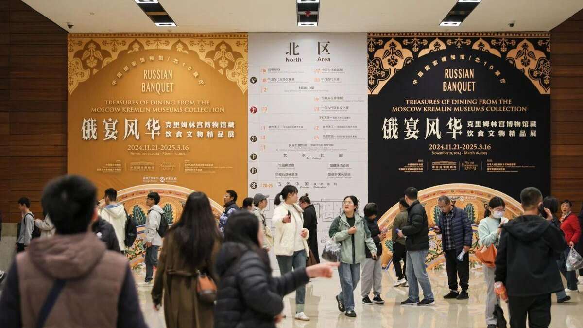 中国国家博物馆与俄罗斯莫斯科克里姆林宫博物馆合作推出的“俄宴风华——克里姆林宫博物馆藏饮食文物精品展”开展。