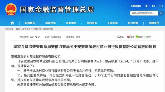 近日,金融监管总局官网披露多条行政许可信息。因被吸收合并,7家村镇银行以及1家农商银行均于日前获批解散。