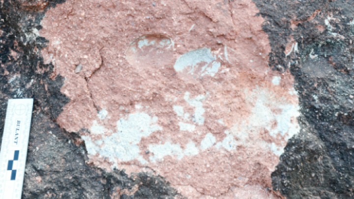 近日,两名香港游客在广东河源市区迎客大桥桥北公园徒步时,无意中发现一窝6枚恐龙蛋化石。