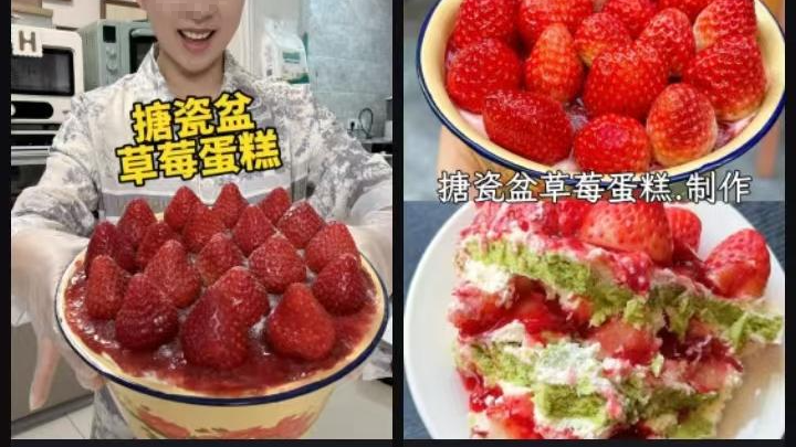 搪瓷盆草莓蛋糕,近期突然在全网火了起来。这种草莓蛋糕用复古的搪瓷盆作为容器,装上满满一层草莓点缀,颜值高又有个性,深受年轻群体的青睐。
