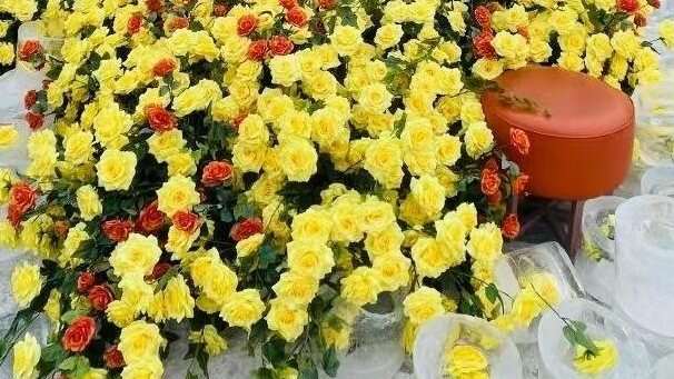 哈尔滨近日在哈西万达广场举办冬日限定活动,以独特的透明冰雕黄玫瑰吸引游客驻足。