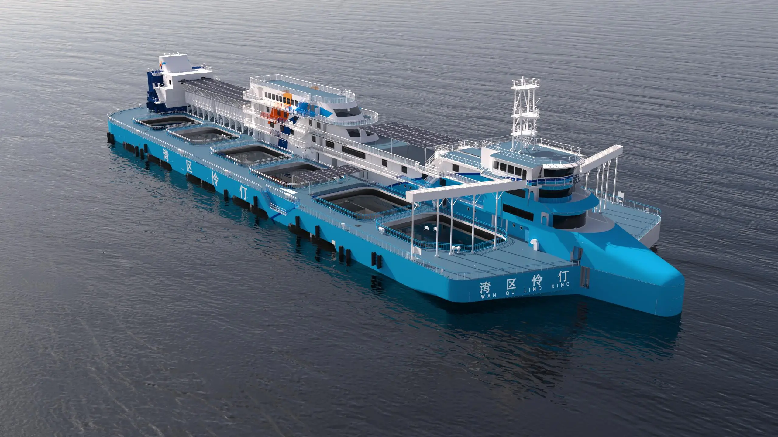 3月25日,全球首艘水体自然交换型深远海养殖工船被正式命名为“湾区伶仃”号。