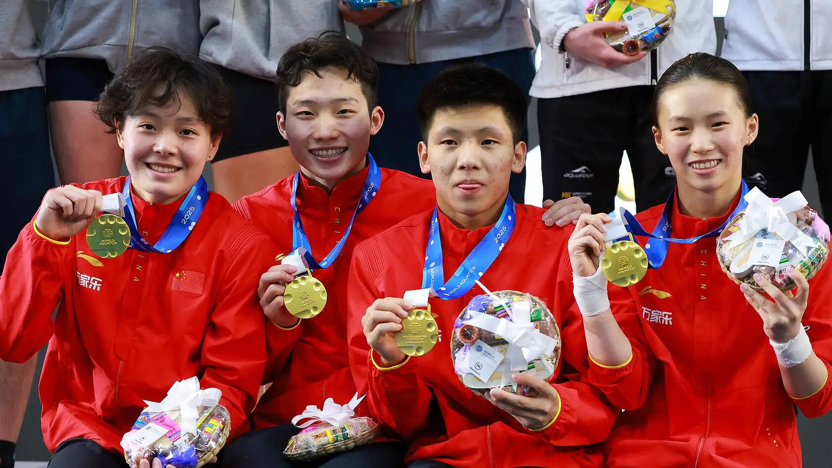 北京时间4月5日,在墨西哥举行的2025年世界泳联跳水世界瓜达拉哈拉站的混合团体跳水决赛中,由陈艺文、陈芋汐、程子龙和王宗源组成的中国队发挥稳健,凭借全场最高的 489.10 分断层领先,夺得金牌。