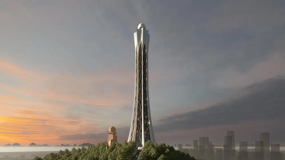 该塔外立面以流线型竖向肋条为设计语言,顶部气象观测球如一颗闪耀的“明珠”,结合夜晚灯光,星星点点的塔身将成为番禺的标志性建筑。