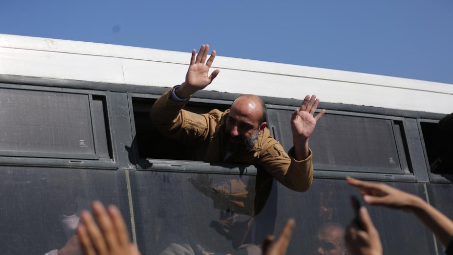 2月15日,在加沙地带南部汗尤尼斯,获释人员受到欢迎。巴勒斯坦在押人员协会主席阿卜杜拉·扎加里15日说,以色列当天释放了369名被扣押人员。当天,大多数获释人员被送往加沙地带,部分获释人员被送至约旦河西岸中部城市拉姆安拉。