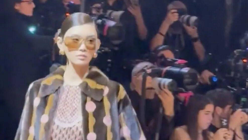 当地时间2月26日,米兰时装周上,奚梦瑶重登国际T台,头戴墨镜身貂皮大衣走秀,气场全开。