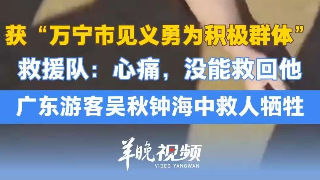 8月8日,海南万宁神州半岛乐涛湾,广东游客吴秋钟在发现三人溺水后,跃入海中施救,用生命托举起希望,但却因在救援过程中耗尽体力,不幸溺水牺牲,年仅37岁。