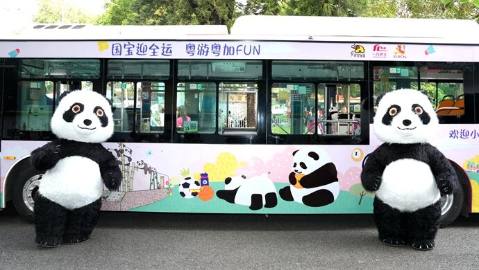 以“移动熊猫科普馆”的形式穿行在城市主干道,为广州增添浓厚的全运喜庆氛围。