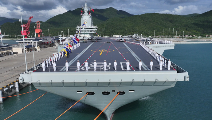 8日下午,海军新闻发言人冷国伟就福建舰部署地点、舰载机配备和中国海军航母发展计划等问题,接受记者采访。