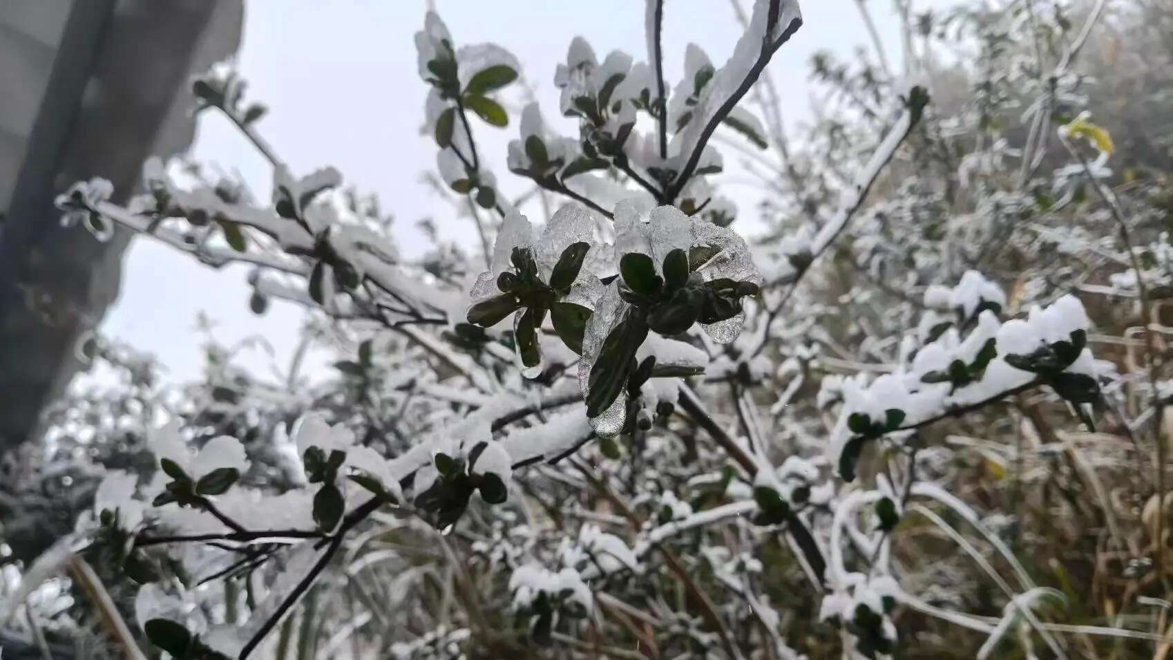 广东大部气温已明显下降,粤北高海拔山区出现雾凇冰挂现象。