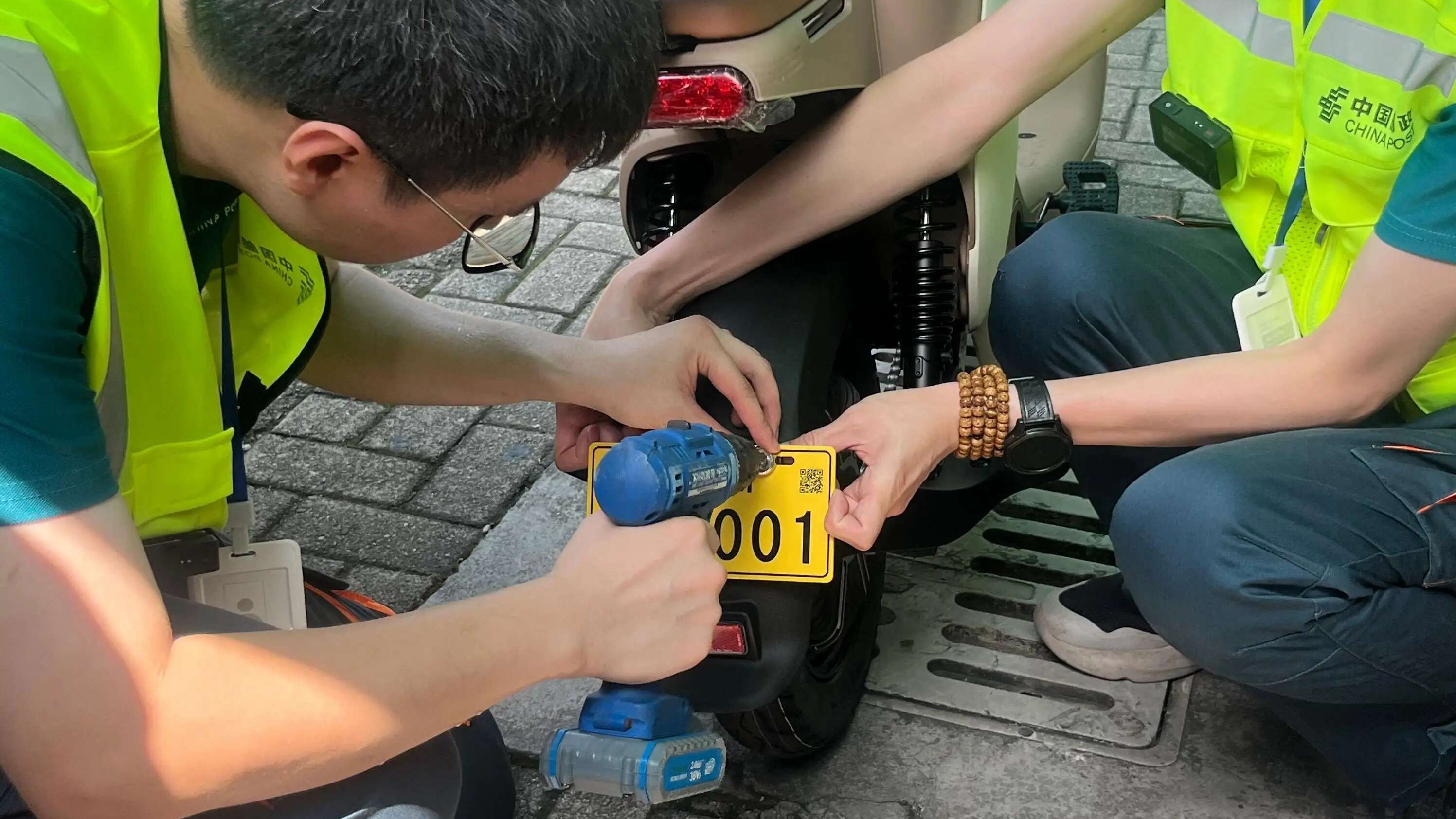 9月1日上午10点半,天河宝翠园电动自行车上牌网点迎来广州首张“电鸡”专用号牌的核发。