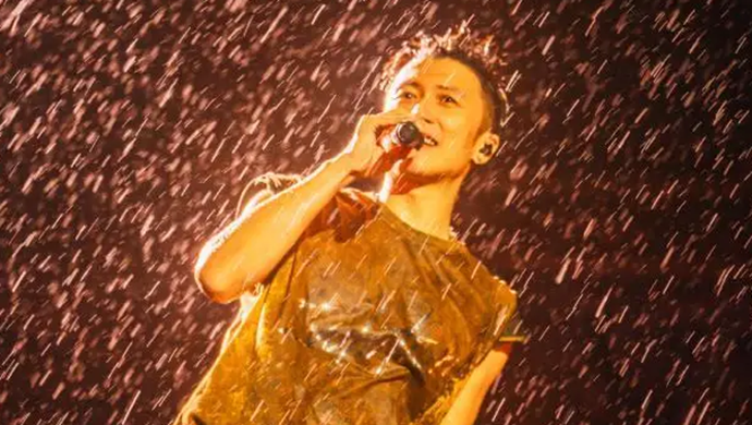 谢霆锋全程未撑伞,接连献唱多首金曲,气氛直接燃爆。