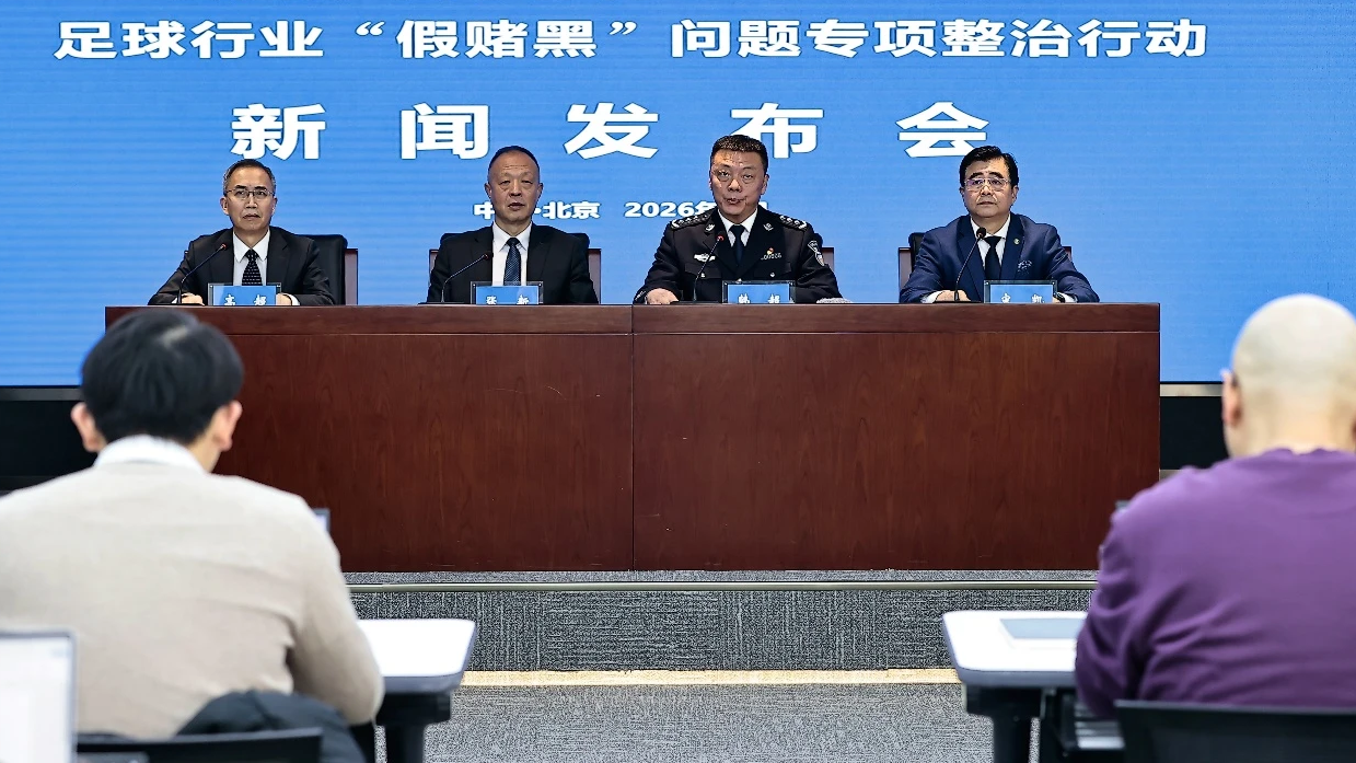 近日,国家体育总局、公安部、中国足协联合召开新闻发布会,介绍足球行业“假赌黑”问题专项整治行动的相关情况。