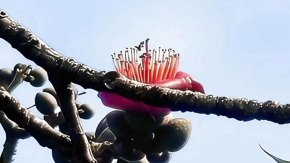 近日,广州中山纪念堂内那株357岁的“木棉王”枝头,悄然绽开两朵红花——不仅比往年提前了近一周,更罕见地迎来“双花同开”,为羊城送上春日祝福。