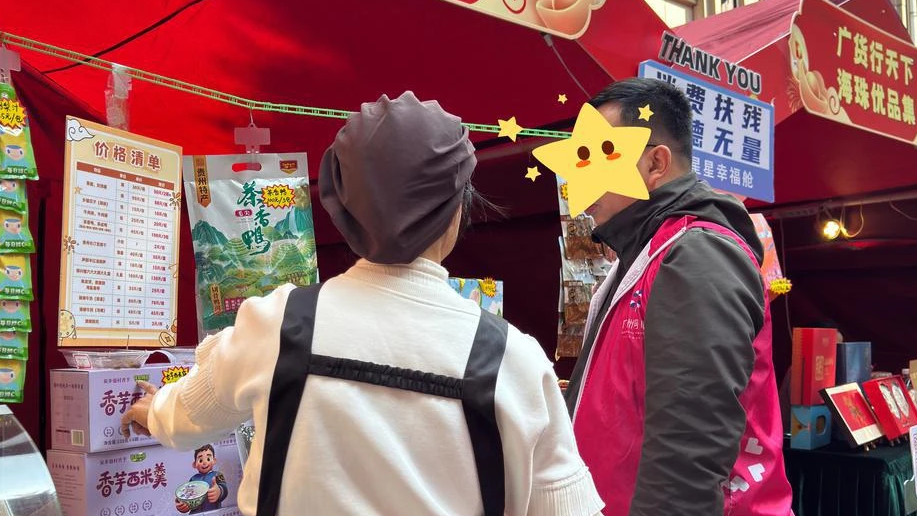 近日,在广州市海珠区素社街道的“广货公益·善暖年集”上,一个由街道搭台、广州市同心社会工作服务中心策划的特殊摊位,吸引了不少街坊驻足。