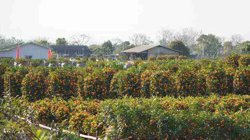 在200多亩的年桔种植基地,黄澄澄的果实缀满枝头,清香桔味扑鼻而来,田间地头货车穿梭、农户忙碌,一派热火朝天的景象。