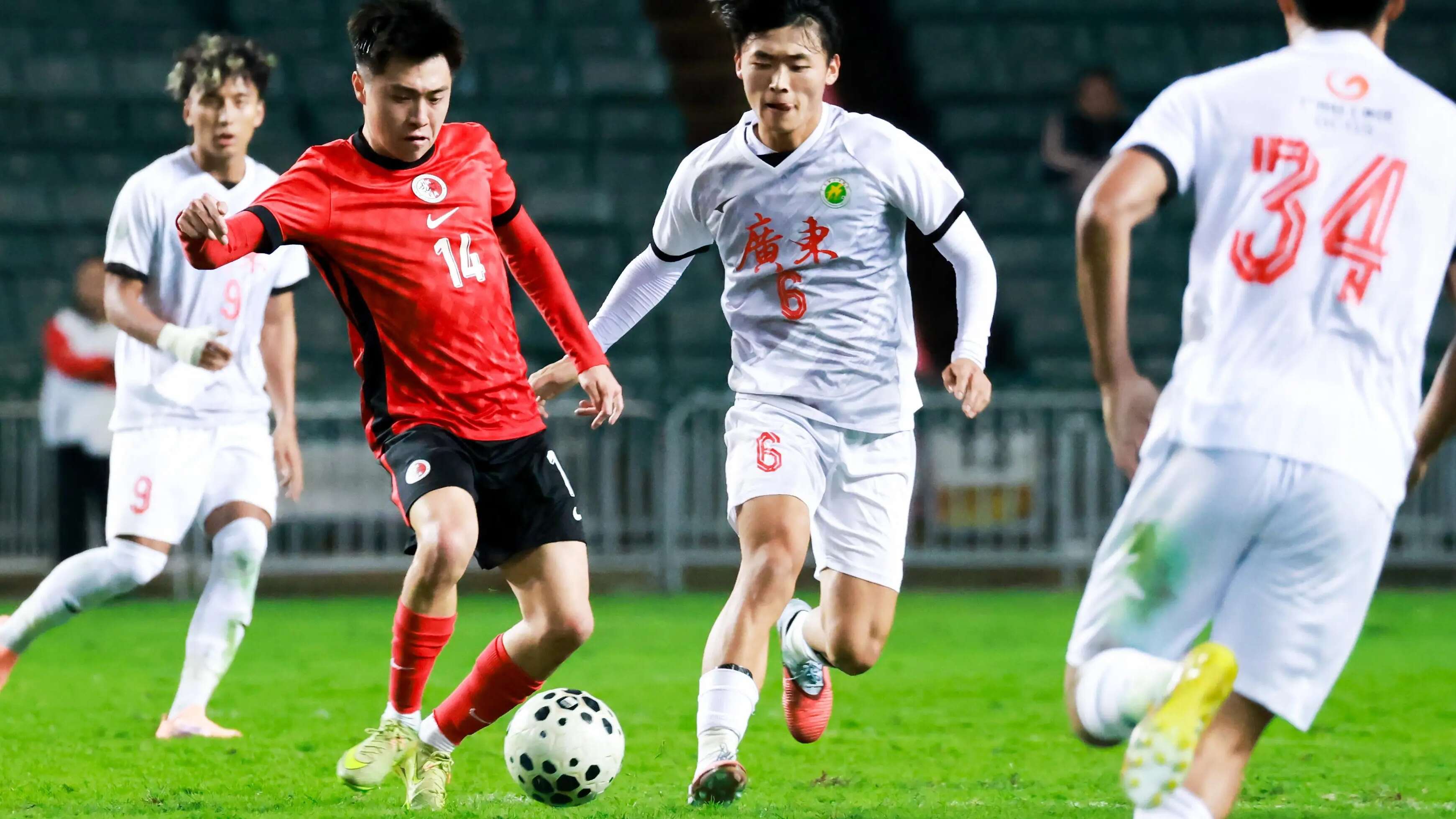 12月28日晚,第44届省港杯足球赛首回合比赛在香港大球场进行,少打两人的广东队以2比2惊险战平中国香港队。