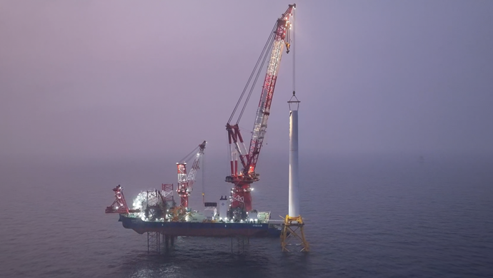 华电阳江三山岛六海上风电场项目顺利完成首台风机吊装,全面开工建设。